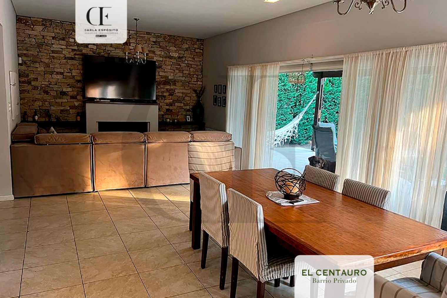 Casa en alquiler semi amoblada en Canning, ubicada en el exclusivo barrio El Centauro, sobre la calle Sargento Cabral 2650. Esta propiedad, de 5 ambientes y excelente calidad constructiva, ofrece un espacio ideal para disfrutar de la comodidad y el confort. Con una superficie total de 250 m2, la casa cuenta con 4 habitaciones, de las cuales una es en suite, y 3 baños en total. La disposición de la casa en dos plantas permite un aprovechamiento óptimo de los espacios; en planta baja se encuentra un luminoso living con hogar, amplia cocina comedor equipada con alacena y bajo mesada, isla con anafe y salida directa al hermoso jardín, además de un cuarto de servicio, toilette de recepción y lavadero. En planta alta se ubican los tres dormitorios, destacándose el principal con amplio vestidor y baño en suite, junto a otros dos dormitorios que comparten un baño completo.